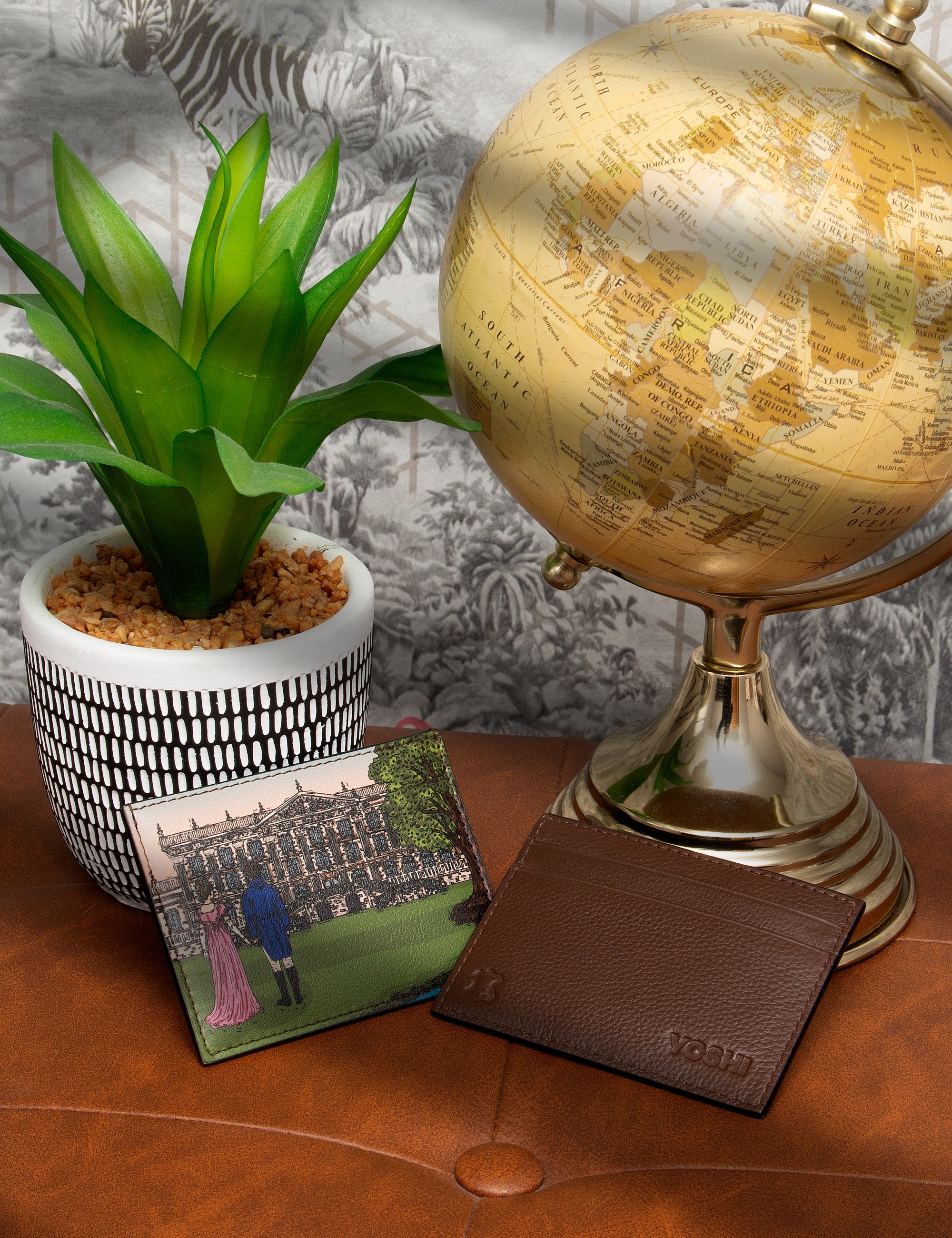 This slim card holder from our Jane Austen collection features a detailed applique of Pemberley which is the famous estate of Mr Darcy from Pride and Prejudice.