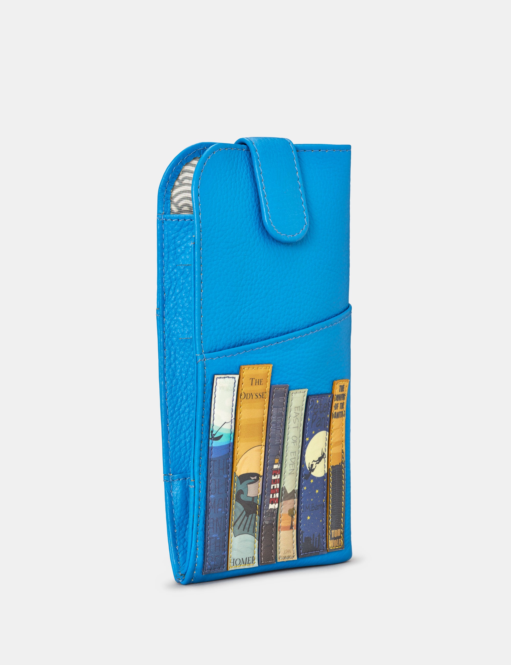 Our blue bookworm glasses case with tab is perfect for any book lover and features colourful bookend appliques on the front.