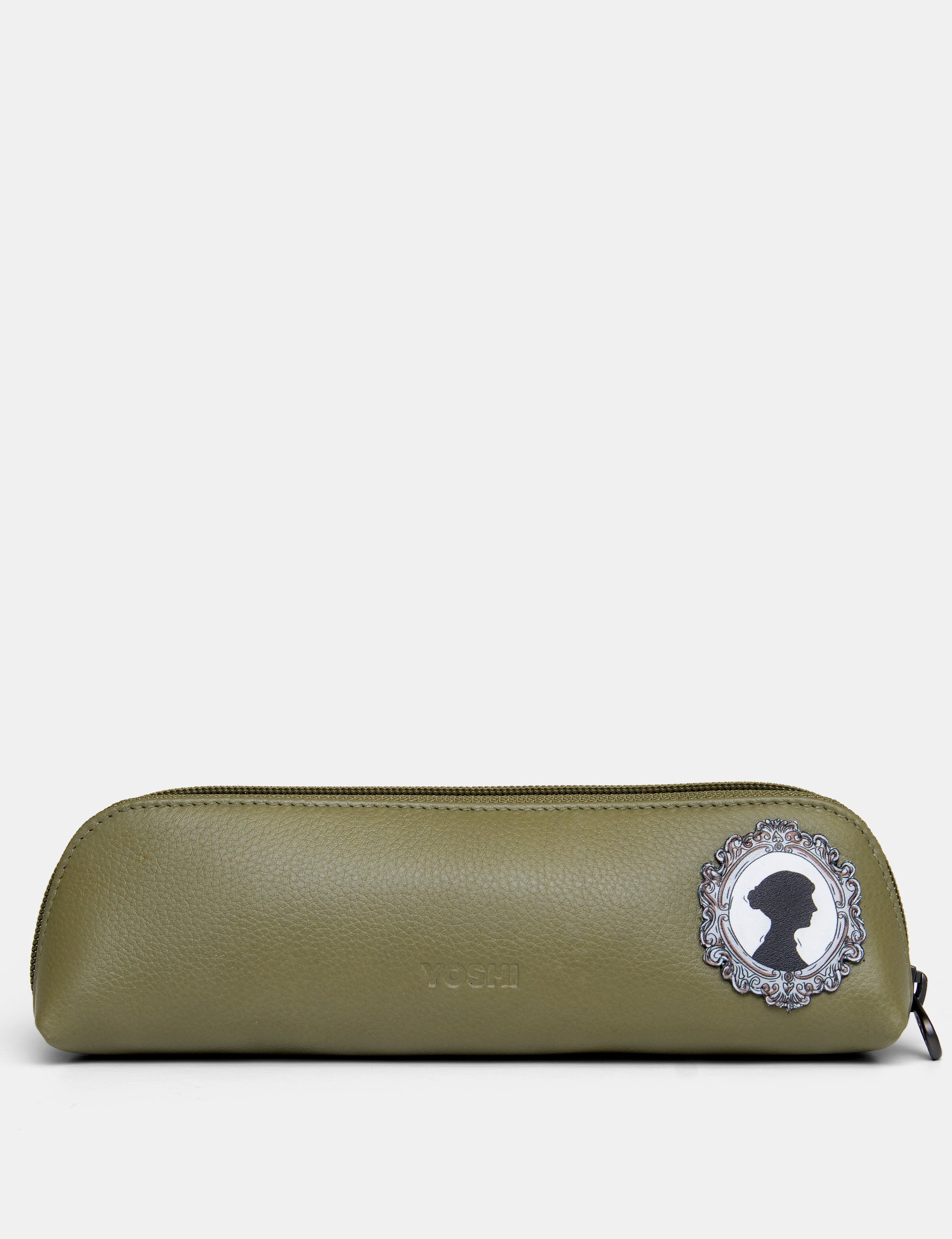 Our Jane Austen themed bookworm soft olive green leather zip top pouch is the perfect pencil case or make up bag etc and fits really nicely into any handbag.