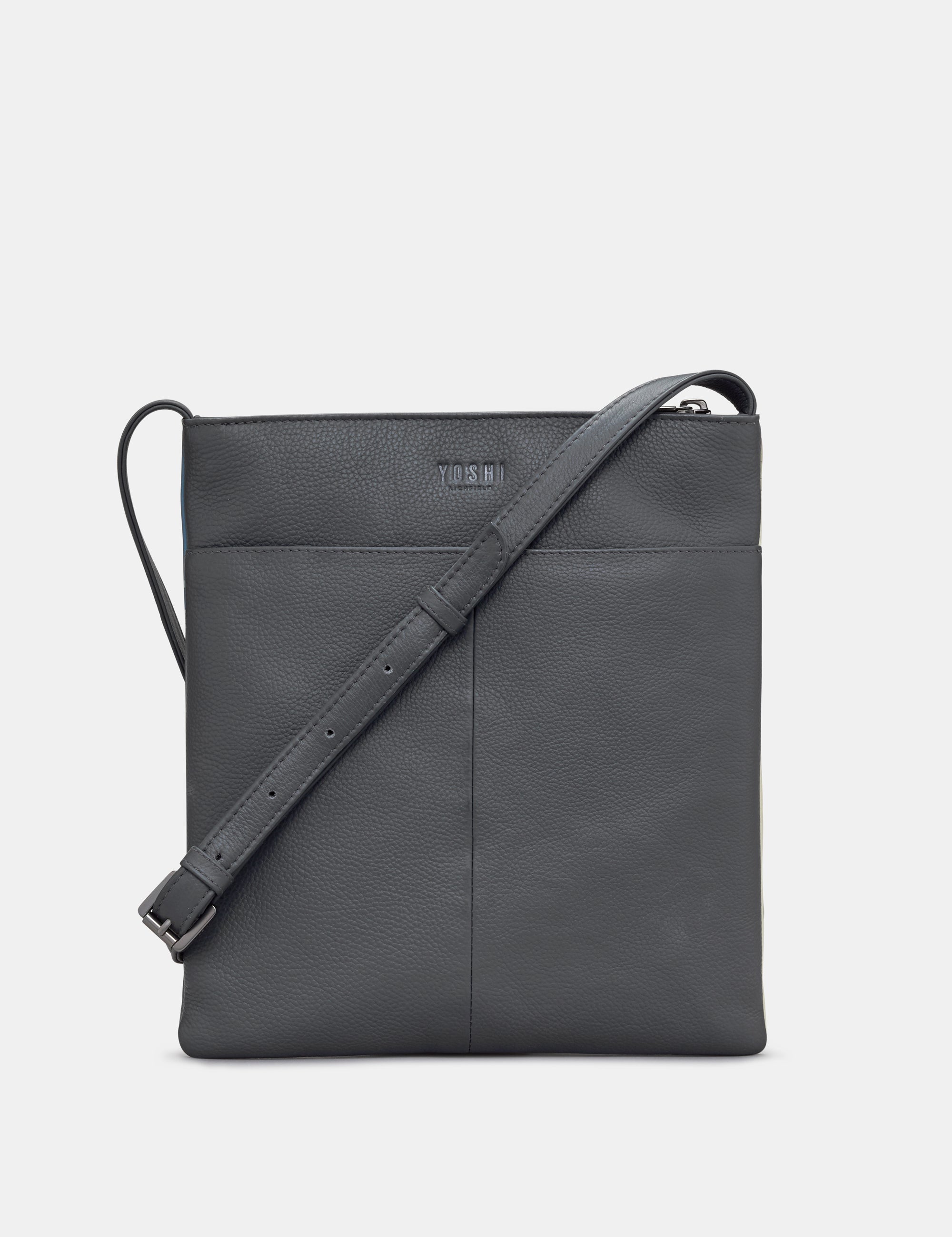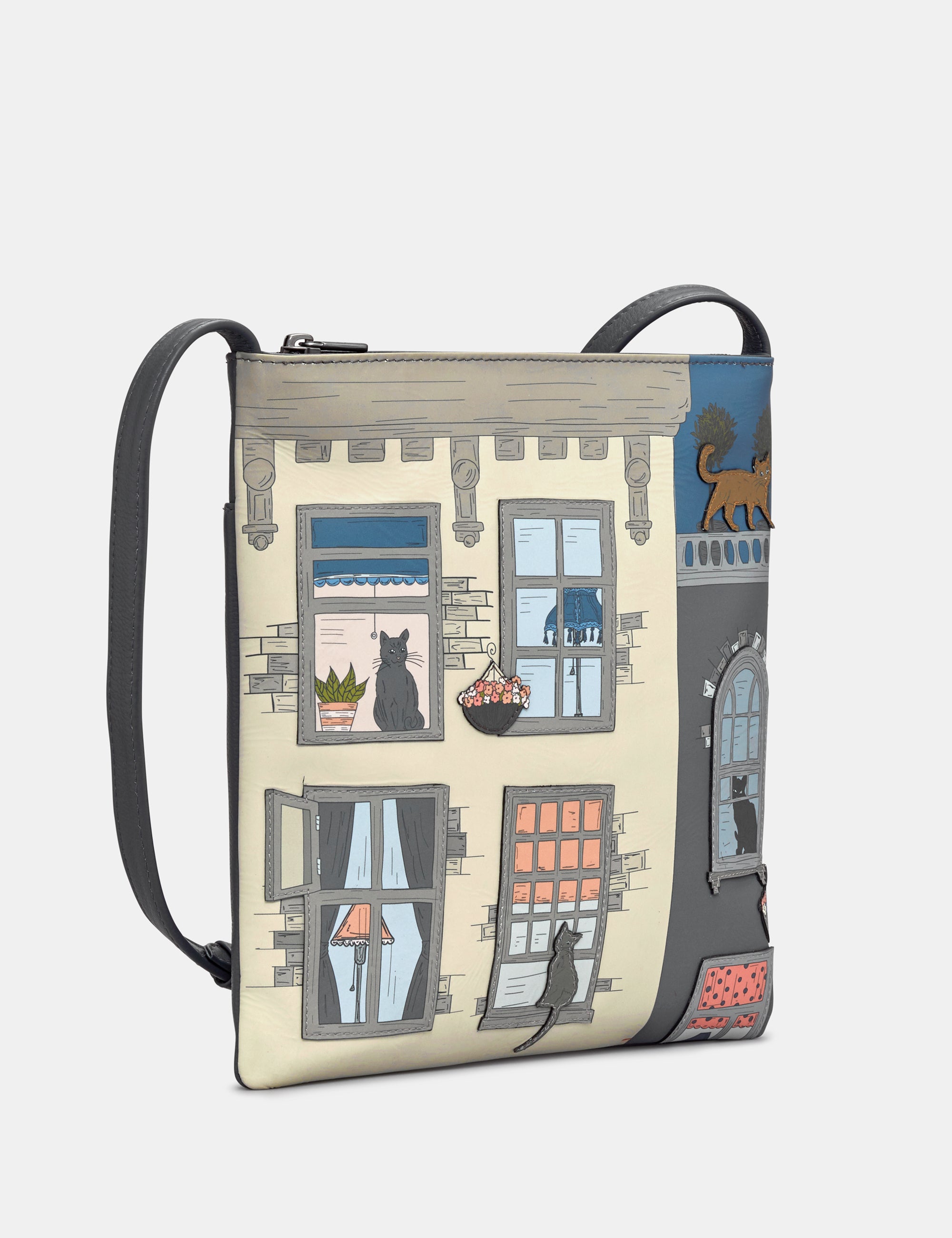Purrfect Neighbours Cats Grey Leather Ladies Cross Body Bag By Yoshi. This Womens Handbag Style Features Cute Kitten Appliques.